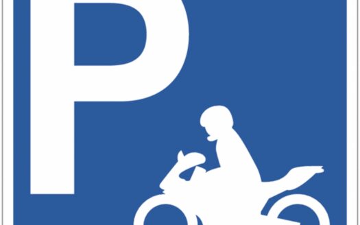 Emplacement délimité pour moto, scooter, vélomoteur ou vélo électrique. Place de parc extérieure pour moto / scoote